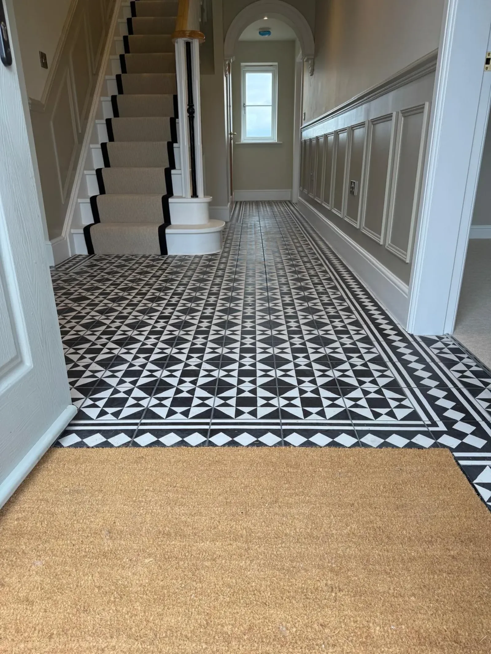 Expert installation of complex geometric patterns. We meticulously plan and lay traditional Victorian tiles to enhance the period character of your home’s entrance or hallway with a flawless, bespoke finish.